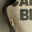 Außen wie innen ist das Designstück handwerklich perfekt verarbeitet und gut durchdacht. Das Motiv stammt aus einem Kaffeesack aus Brasilien, das chromfrei gegerbte Leder wurde in Deutschland hergestellt.