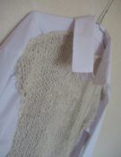 Einfach geht sicher anders, denn schon das Zuschneiden im Fadenlauf gestaltet sich beim Chiffon schwieriger als bei anderen Stoffen. Handwerklich geht es weiter mit dem Schließen der hinteren Naht und dem Anbringen der Borte – natürlich per Hand genäht wie in früheren Zeiten.