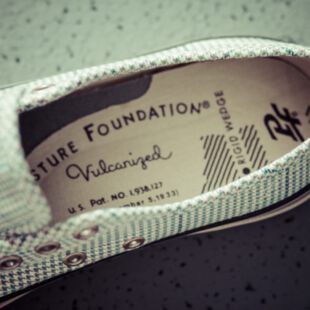 PF Flyers: Die Erfolgsgeschichte beginnt mit einem Autoreifen. Das vulkanisierte Gummi war neben Leinen das Ausgangsmaterial für die ersten robusten Freizeitschuhe von Dr. B. F. Goodrich, einem amerikanischen Reifenfabrikanten.