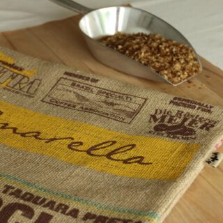Die Kissenhüllen, die in den letzten Tagen im Atelier von traditionsWerk exklusiv aus Kaffeesäcken der schweizerischen Rösterei Meier von Hand gefertigt wurden, sind tatsächlich mit Silberhäutchen gefüllt.