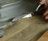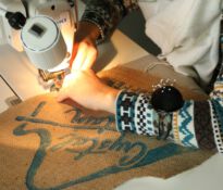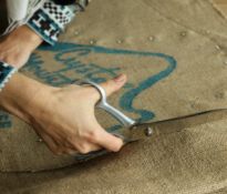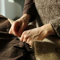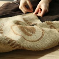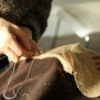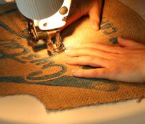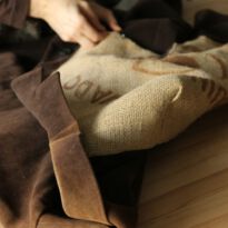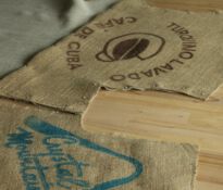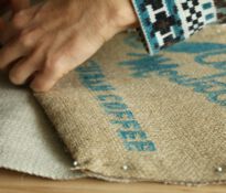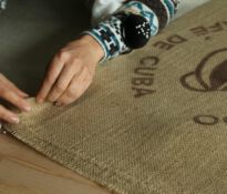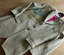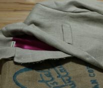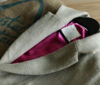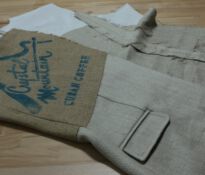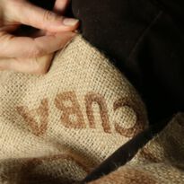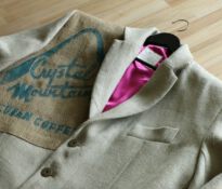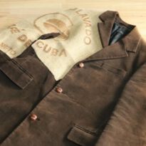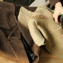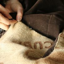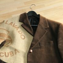 Auf dem Zuschneidetisch im Atelier von traditionsWerk lag in den letzen Tagen ein in Göteborg / Schweden gebraucht gekaufter dunkelbrauner Gehrock und ein Kaffeesack aus Kuba.